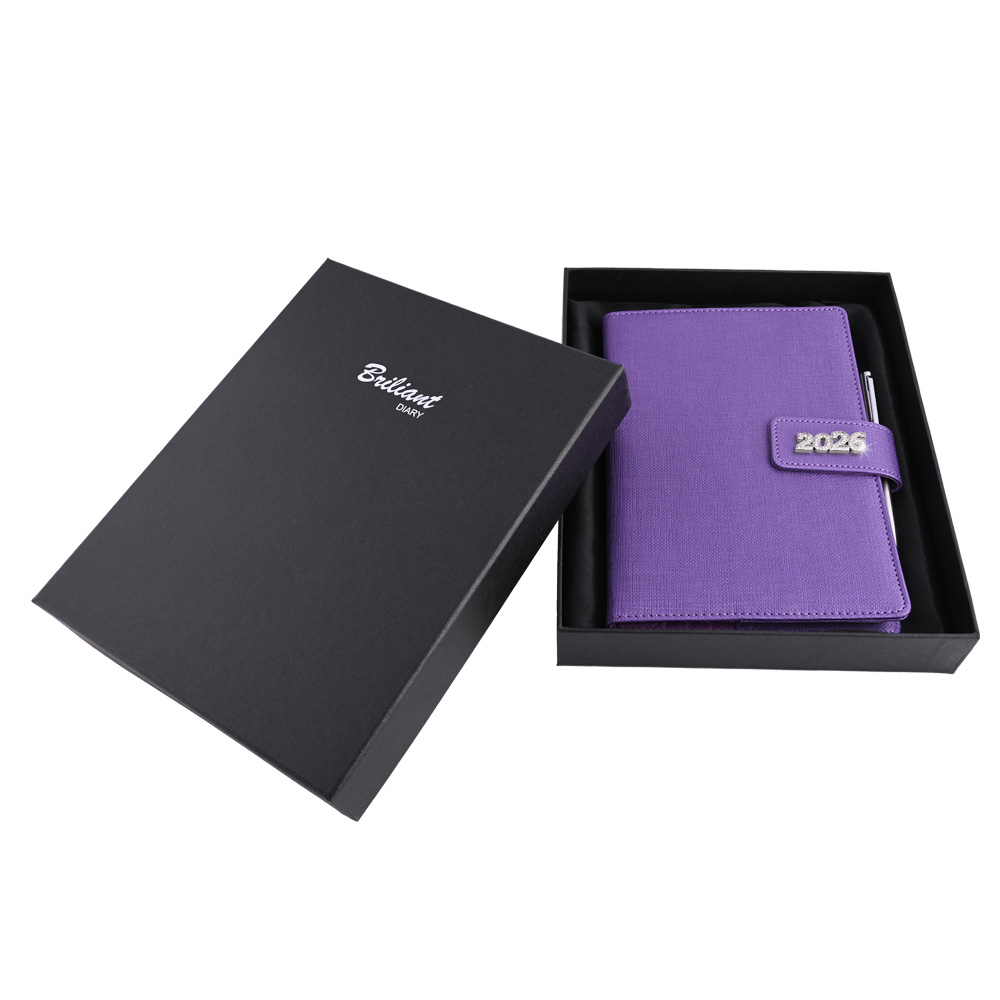 Diár je balený v darčekovej krabičke vystlané saténom.