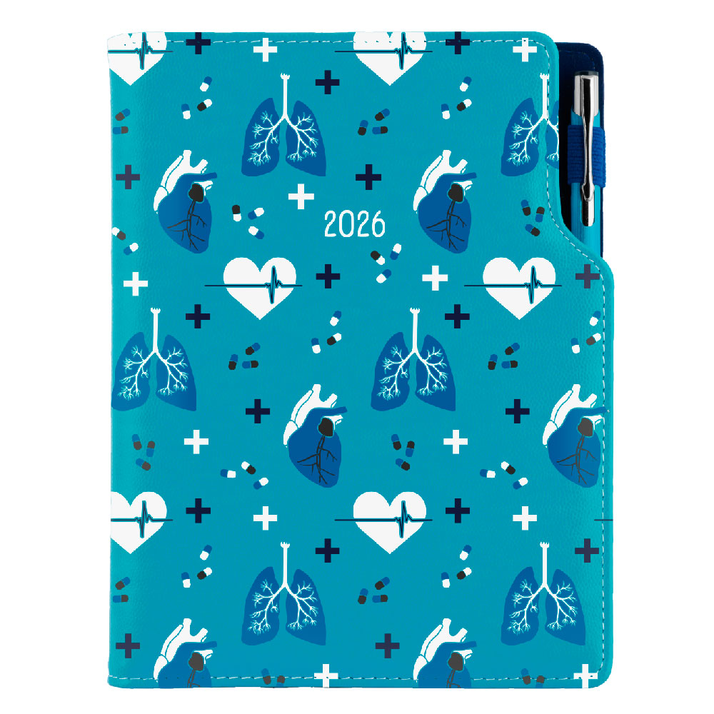 Diár DESIGN týždenný A5 2026 - tyrkysová- Doktor - srdce