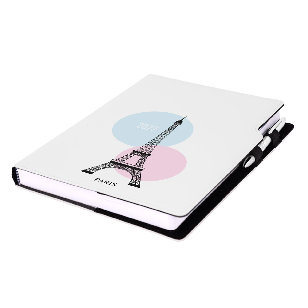 Diár obsahuje: okrúhle odtrhávcie rožky, bielu záložku a pero