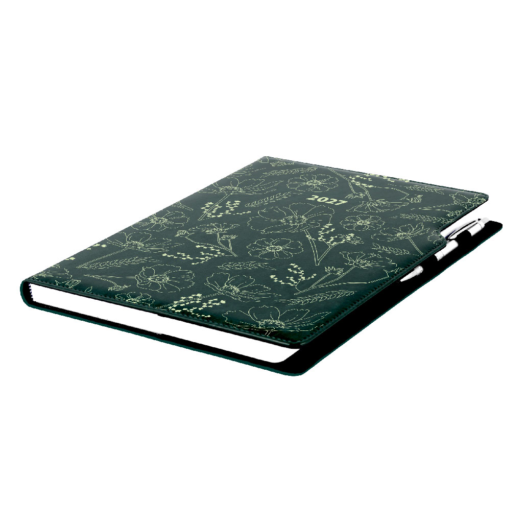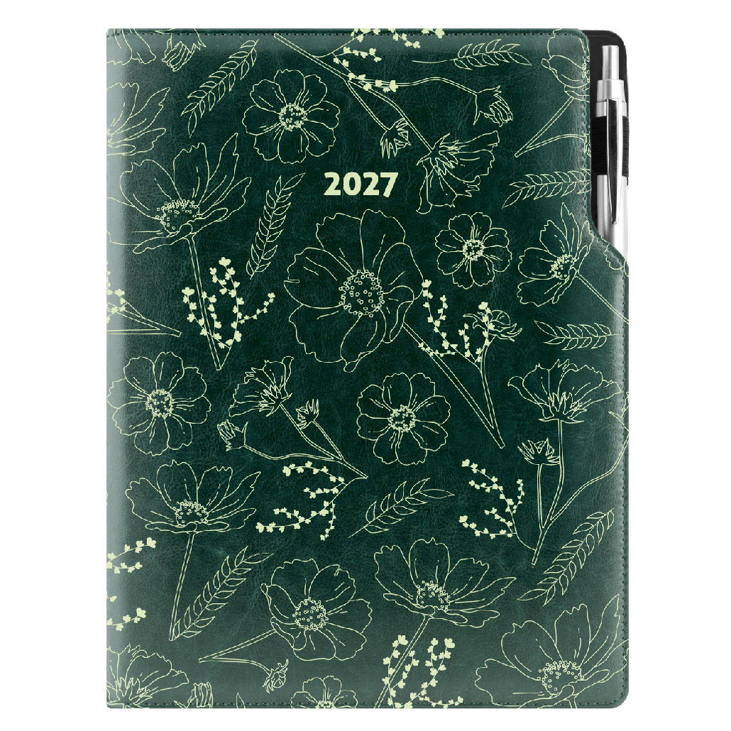 Diár DESIGN týždenný A4 2027 - zelená - Kvety