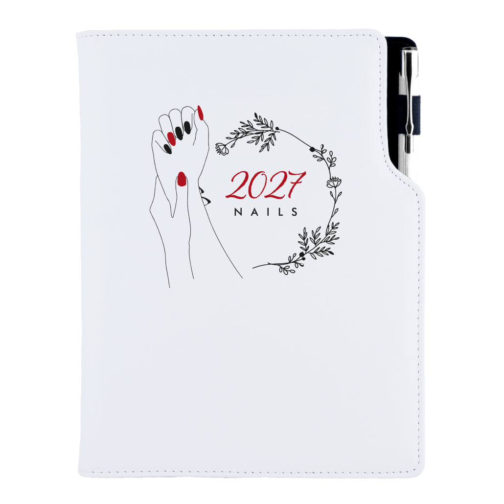 Diár obsahuje: okrúhle odtrhávcie rožky, bielu záložku a pero