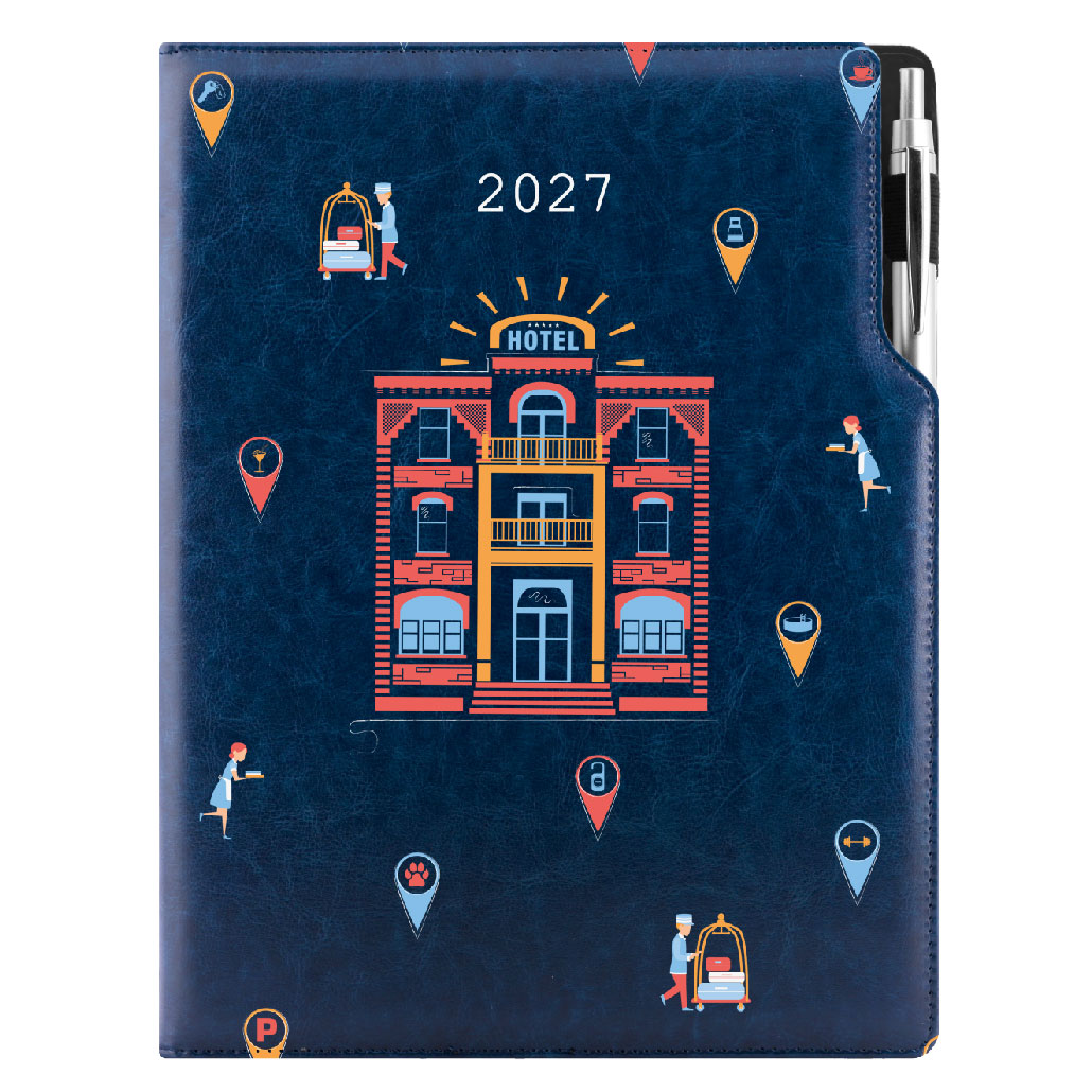 Diár DESIGN denný A4 2027 český - modrá - Hotel