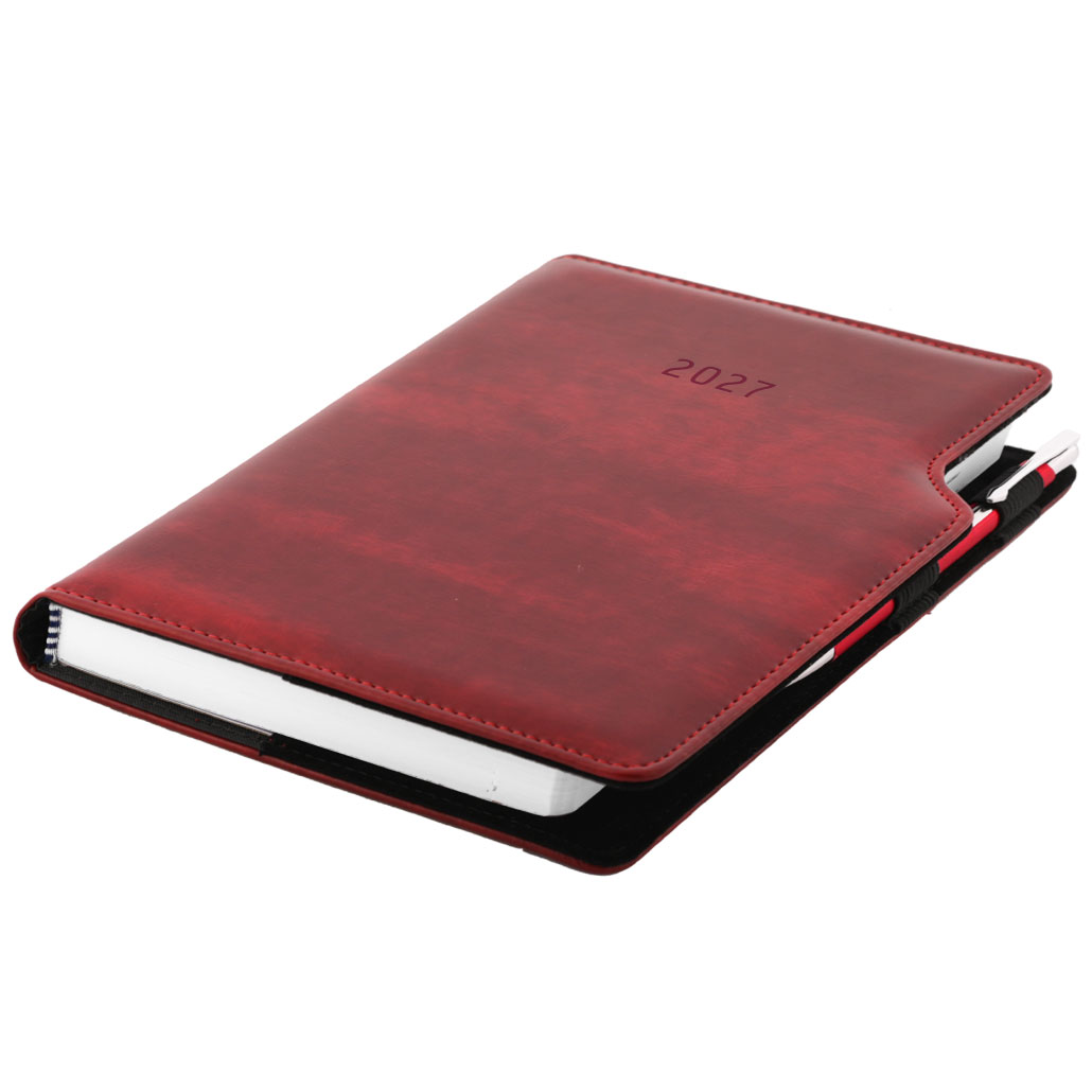 Diár GEP s perom denný A5 2027 slovenský - bordó žíhaná
