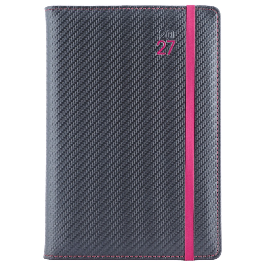 Diár ELASTIC denný A5 2027 slovenský - grafit/magenta gumička