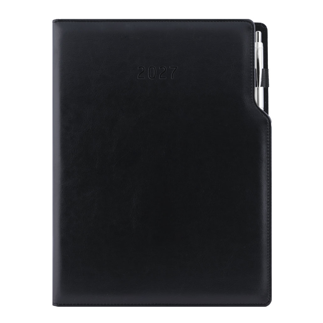 Diár GEP s perom týždenný A4 2027 - čierna/čierne vnútro