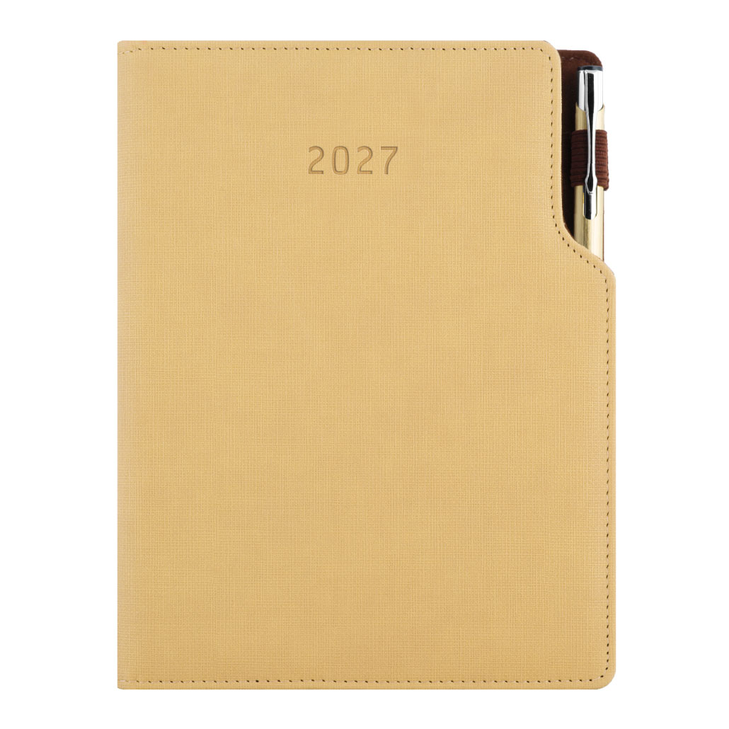 Diár GEP s perom týždenný B6 2027 - béžová/hnedé vnútro