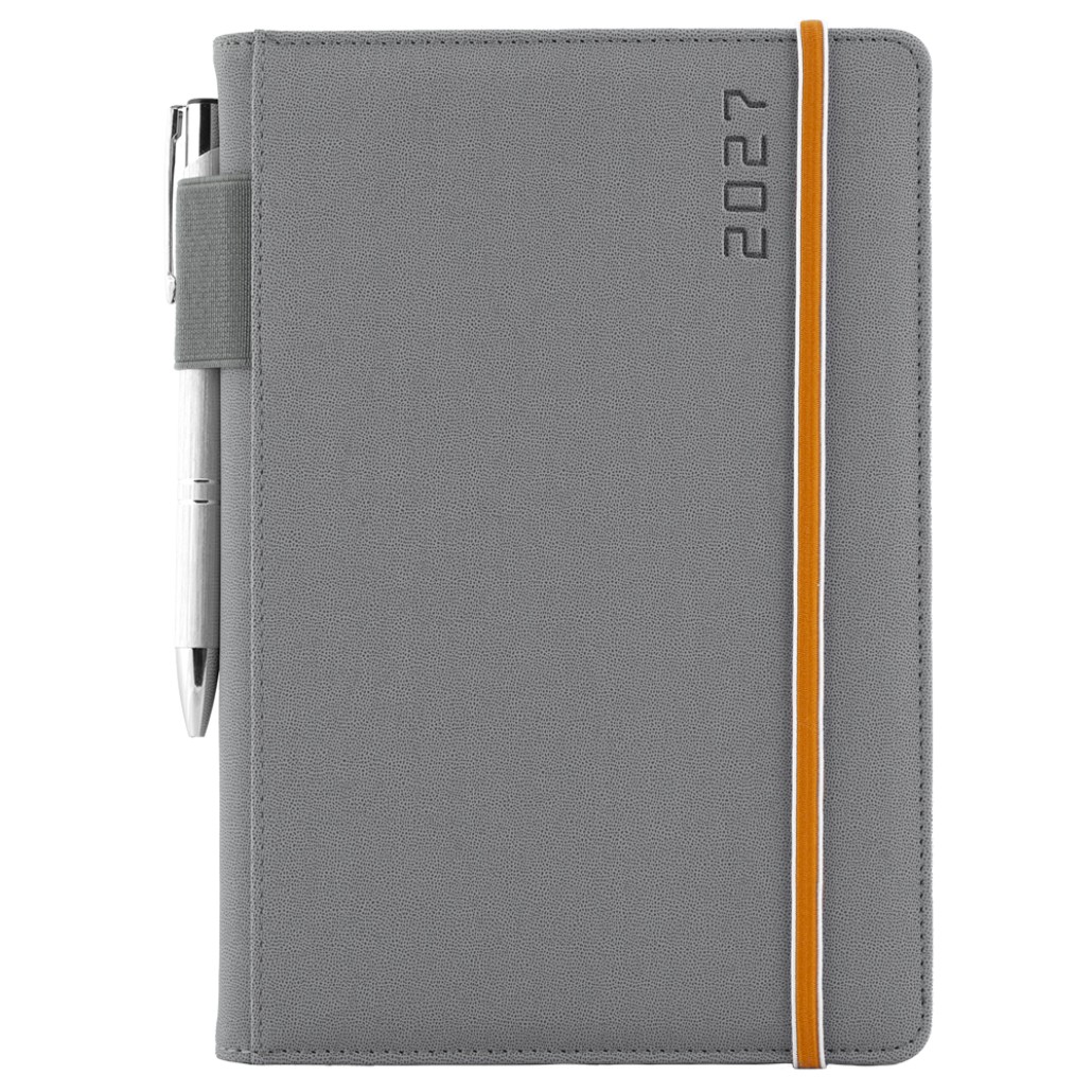 Diár AMOS denný A5 2027 slovenský - sivá/oranžová gumička