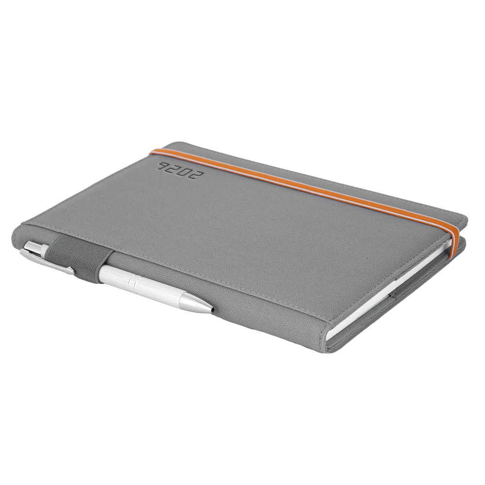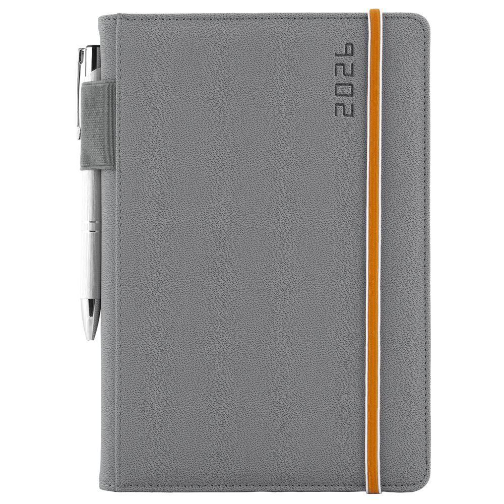 Diár AMOS týždenný A5 2026 - sivá/oranžová gumička