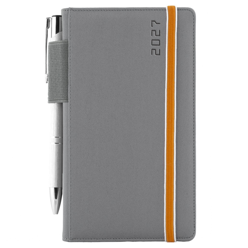 Diár AMOS týždenný vreckový 2027 slovenský - sivá/oranžová gumička