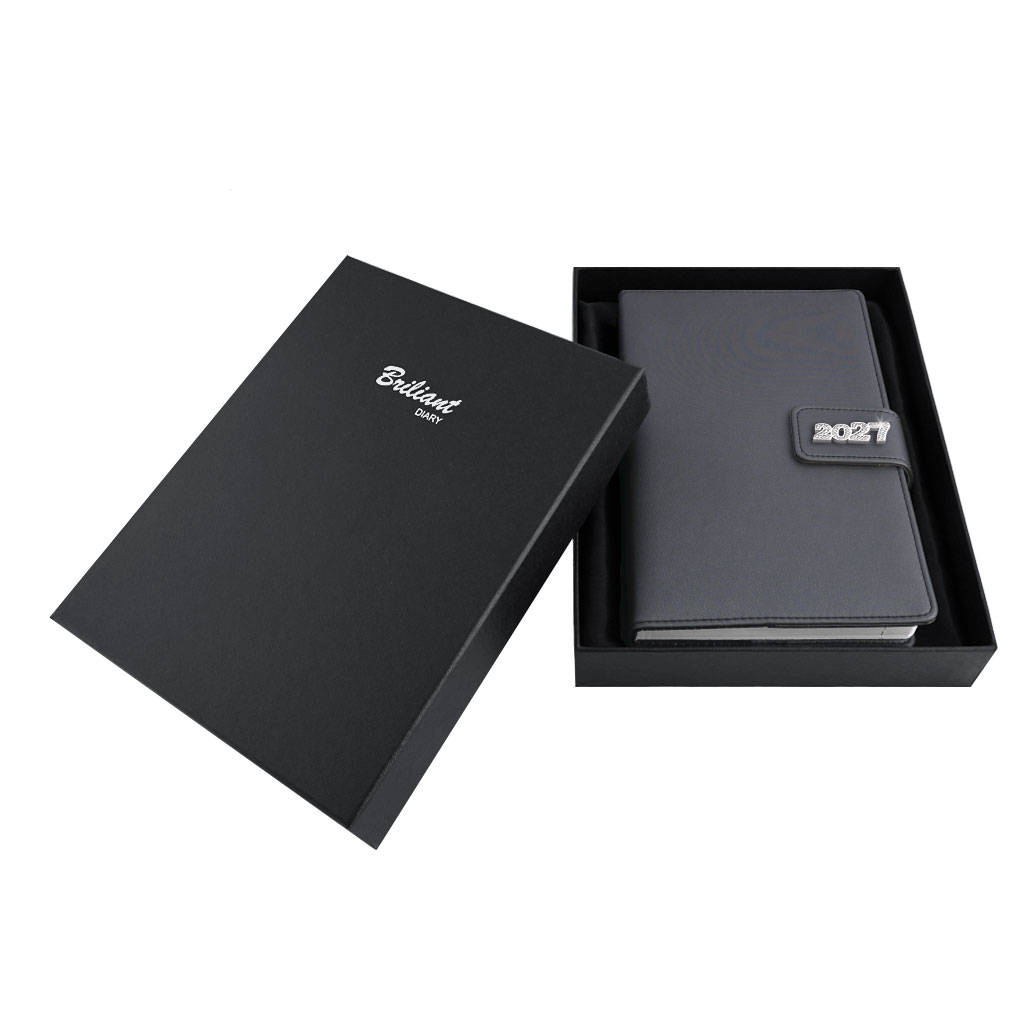 Diár je balený v darčekovej krabičke vystlané saténom.