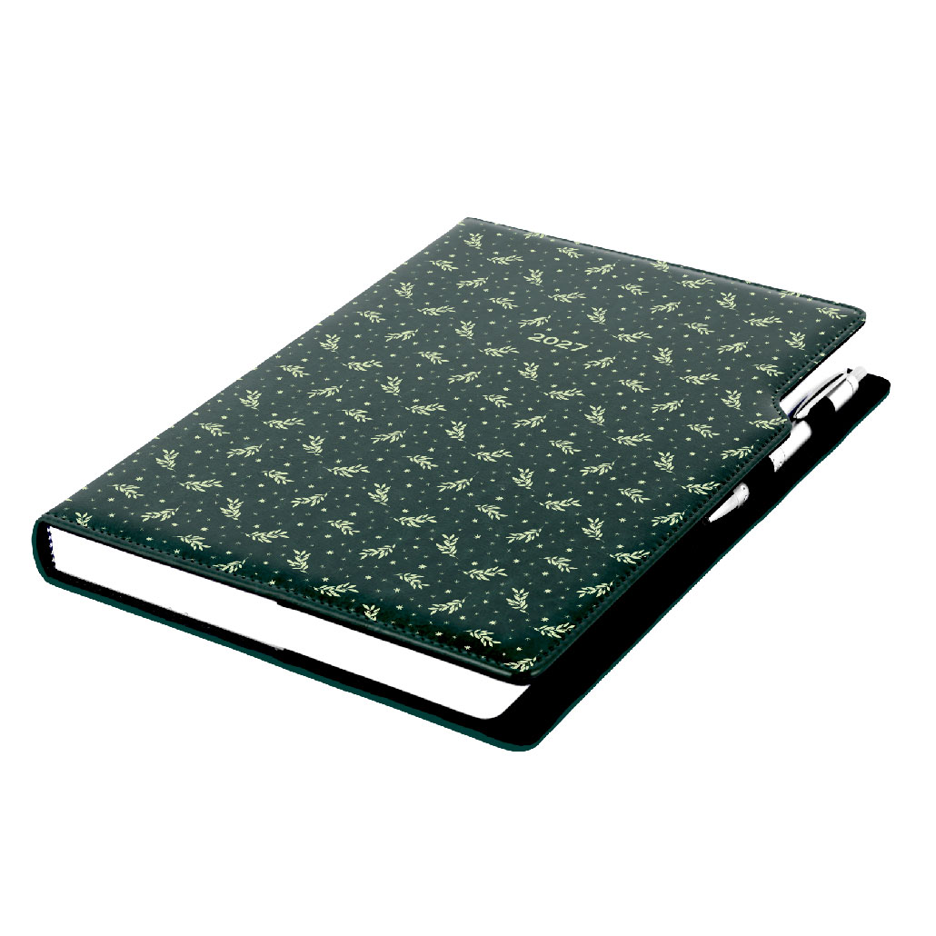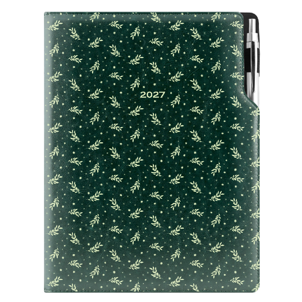 Diár DESIGN denný A4 2027 - zelená - Vetvičky