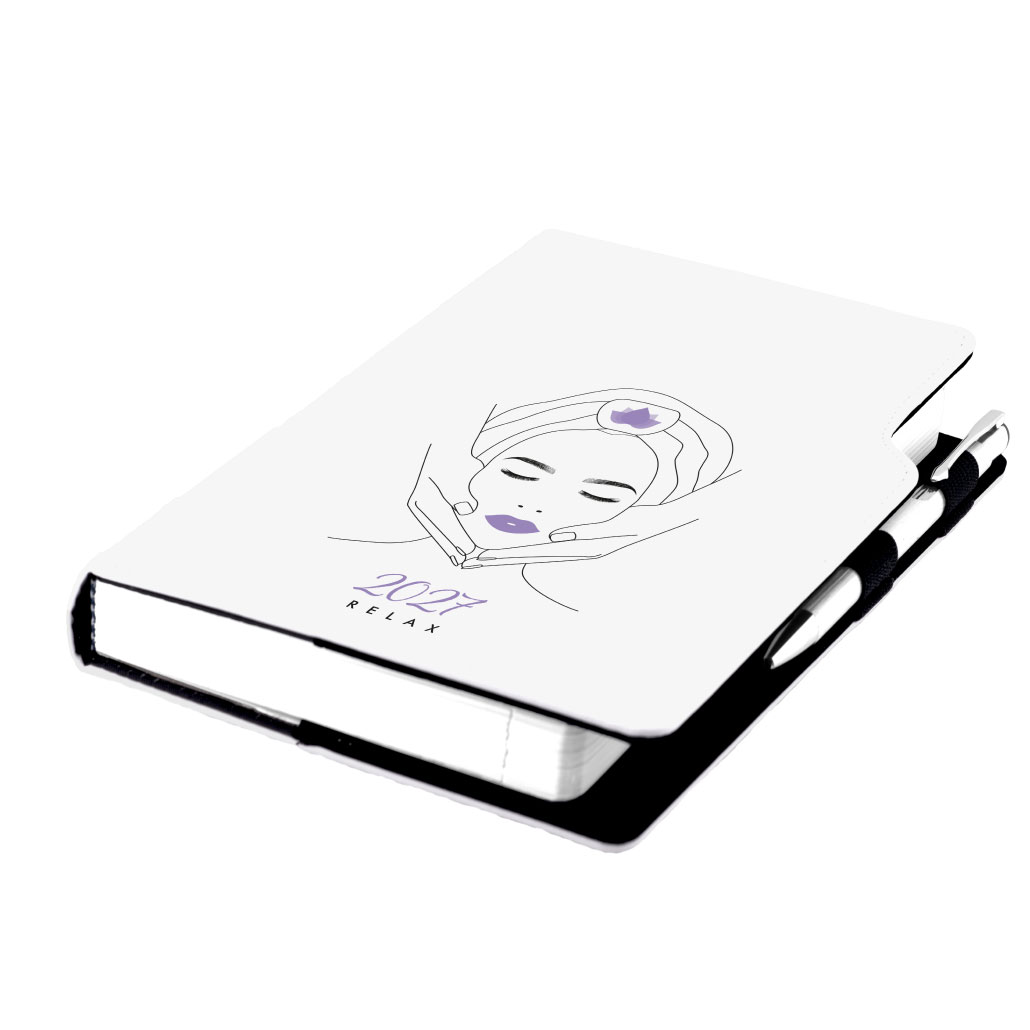 Diár obsahuje: okrúhle odtrhávcie rožky, bielu záložku a pero