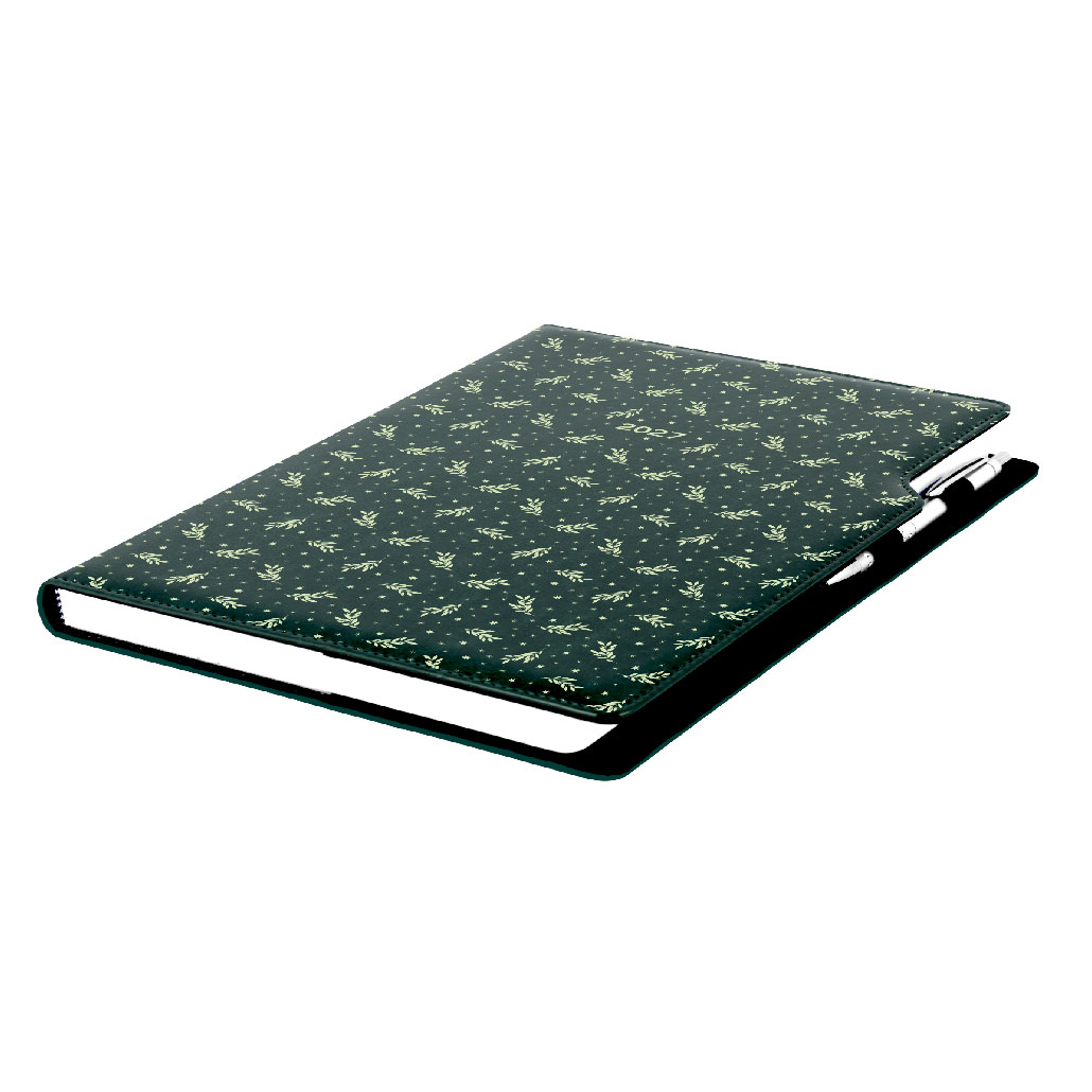 Diár DESIGN týždenný A4 2027 - zelená - Vetvičky
