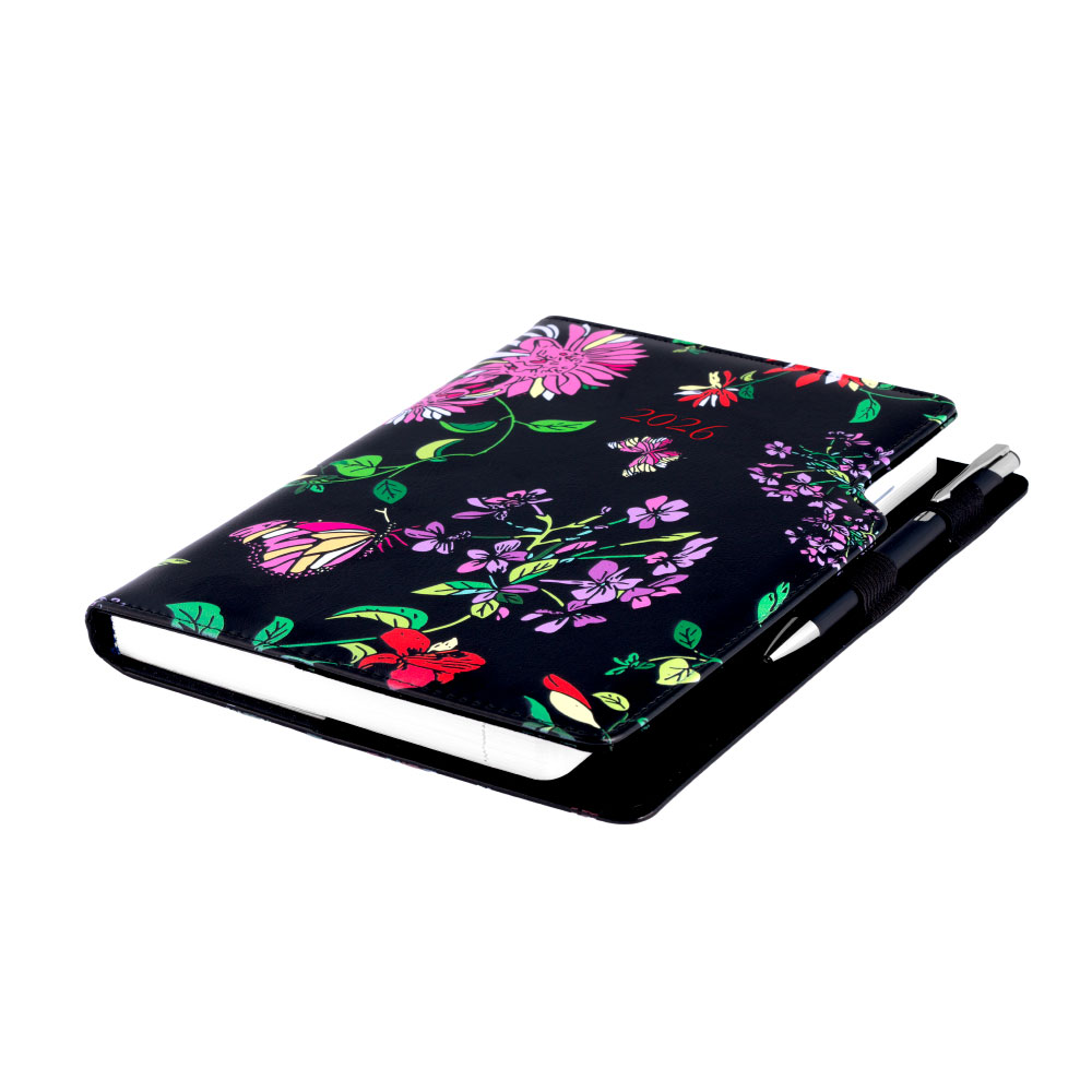 Diár DESIGN týždenný A5 2026 - čierna - Kvety