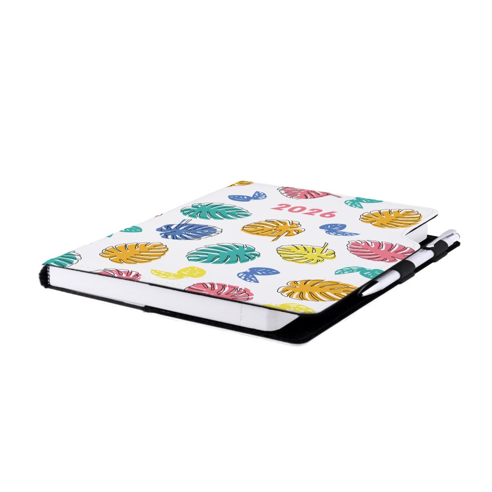 Diár obsahuje: okrúhle odtrhávacie rožky, bielu záložku a pero