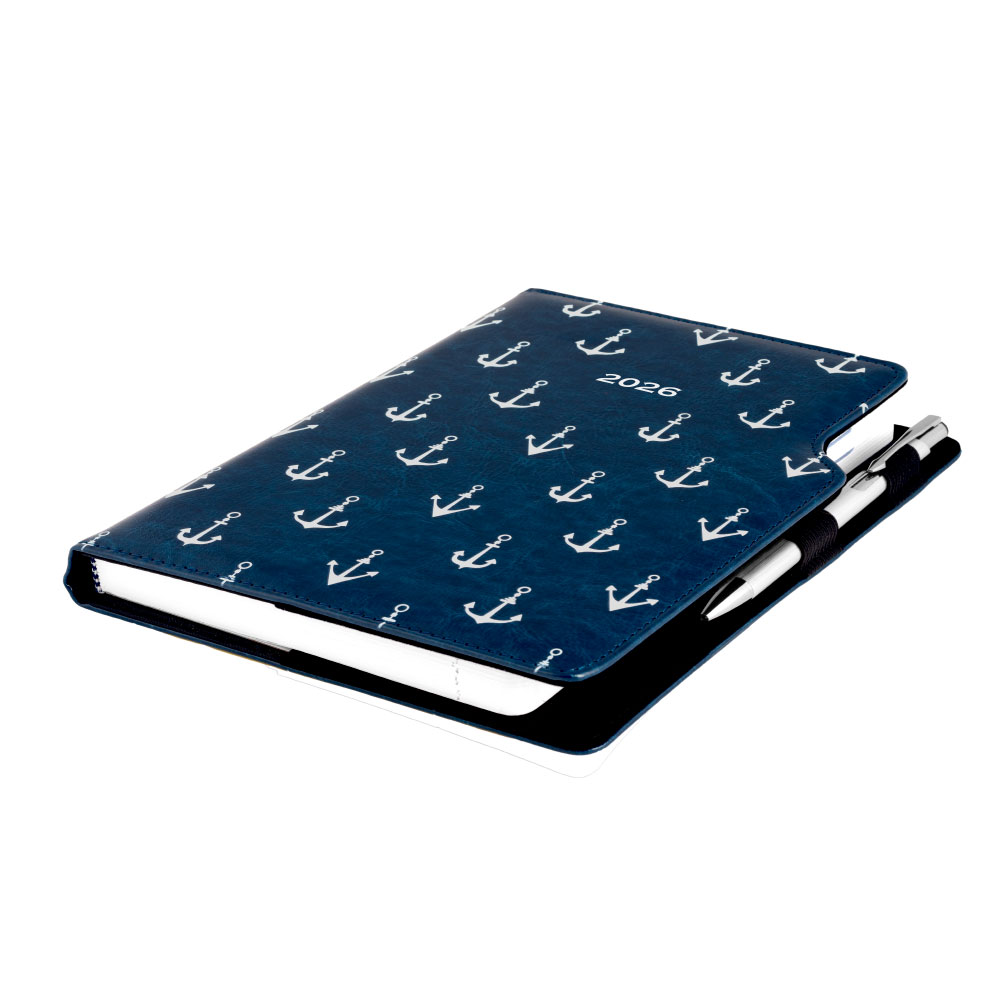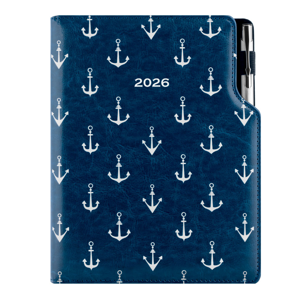 Diár DESIGN týždenný A5 2026 - modrá - Námorník - kotvy