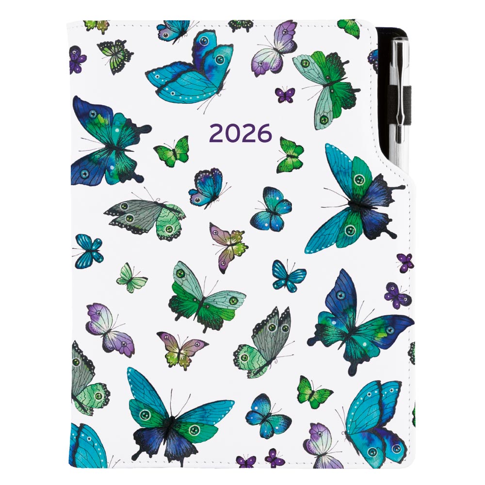 Diár DESIGN týždenný A5 2026 - Motýle modré