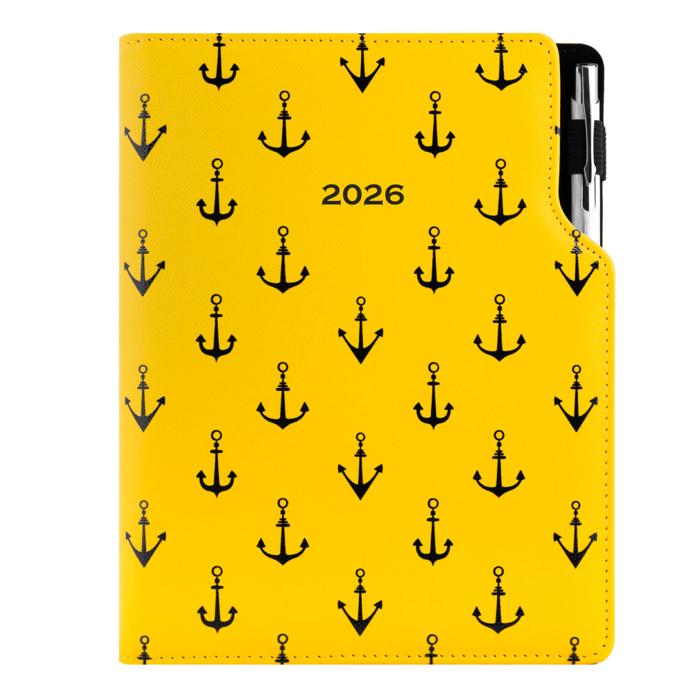 Diár DESIGN týždenný A5 2026 - žltá - Námorník - kotvy