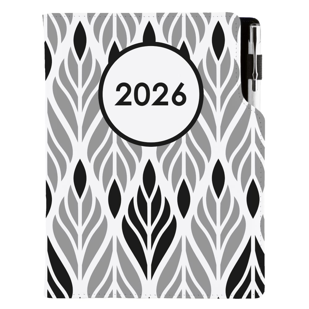 Diár obsahuje: okrúhle odtrhávacie rožky, bielu záložku a pero