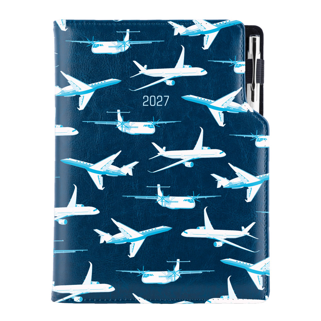 Diár DESIGN týždenný A5 2027 slovenský - modrá - lietadlá