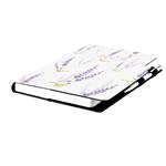 Diár obsahuje: okrúhle odtrhávcie rožky, bielu záložku a pero