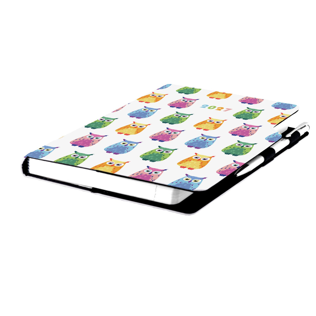 Diár obsahuje: okrúhle odtrhávcie rožky, bielu záložku a pero