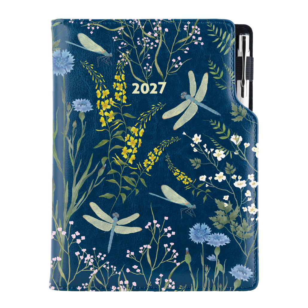 Diár DESIGN týždenný špeciál A5 2027 - modrá - Vážky