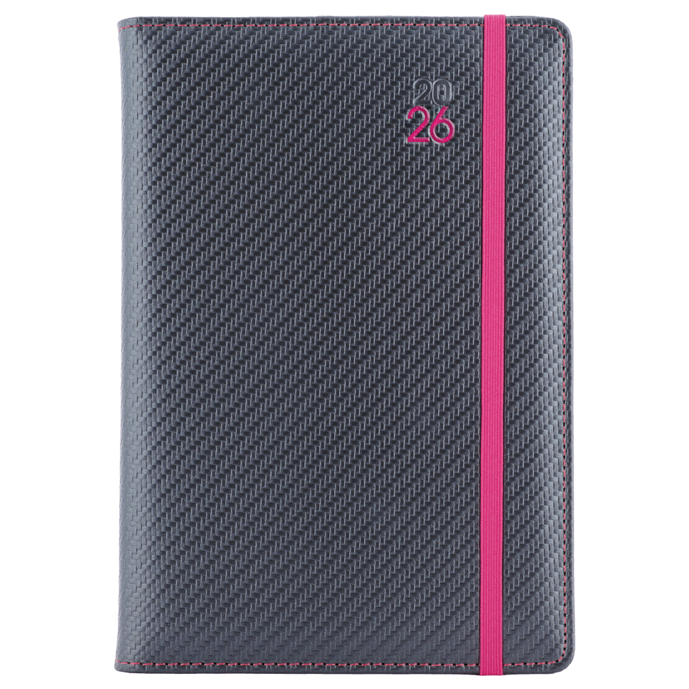 Diár ELASTIC týždenný A5 2026 - grafit/magenta gumička