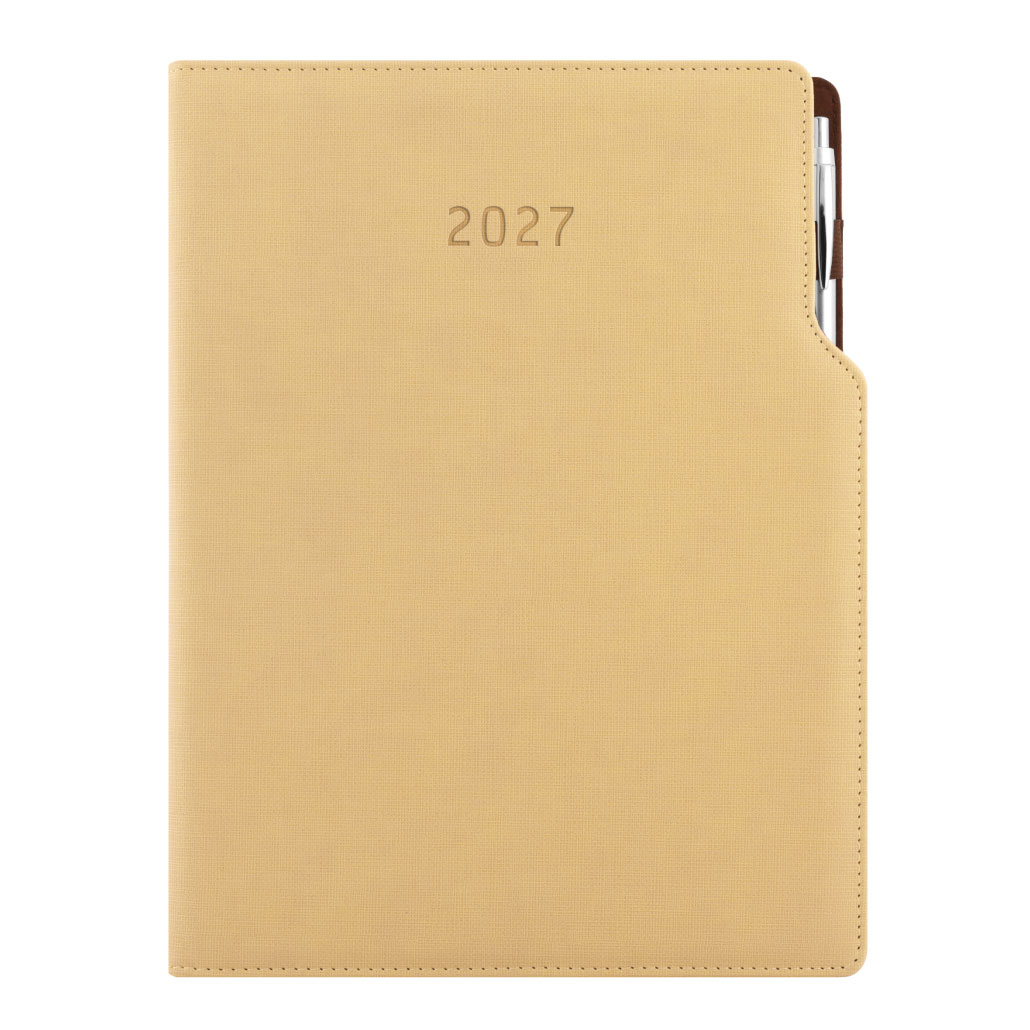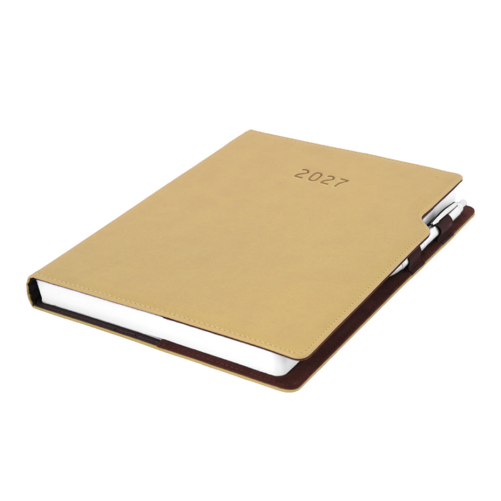 Diár GEP s perom denný A4 2027 - béžová/hnedé vnútro