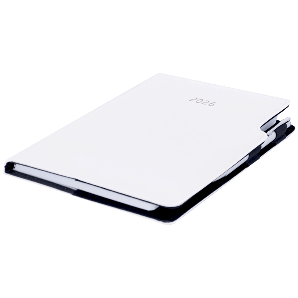 Diár GEP s perom týždenný A5 2026 - biela/ biele obšitie