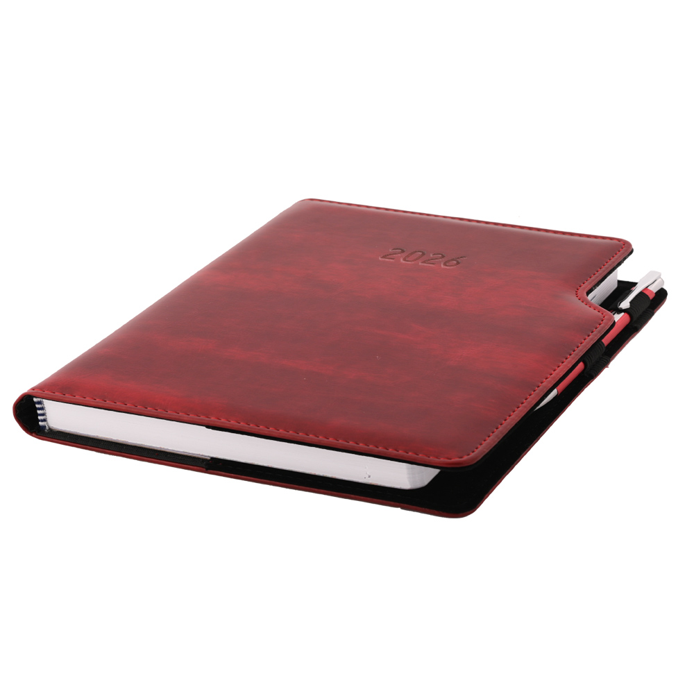 Diár GEP s perom týždenný A5 2026 - bordó žíhaná