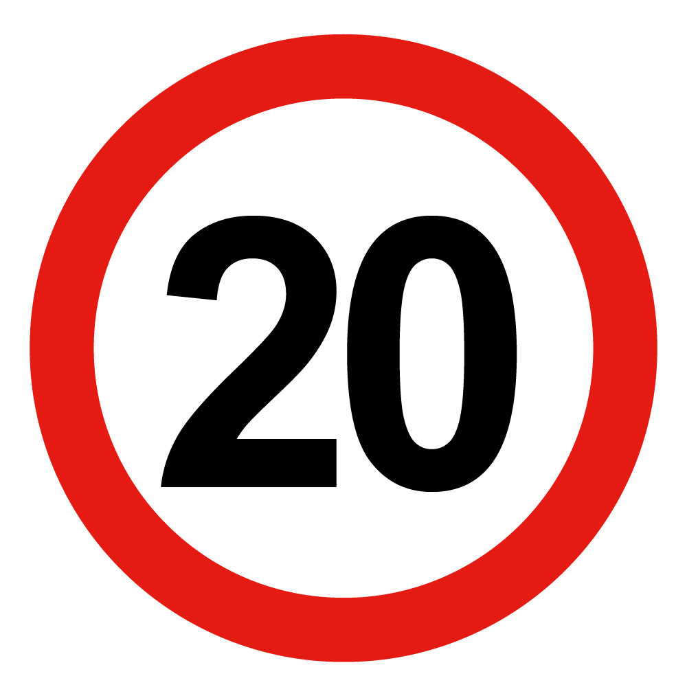 Najvyššia obmedzená/konštrukčná rýchlosť vozidla 20 km, bezpečnostná tabuľka, samolepka - kruh 20 cm