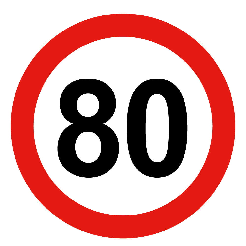 Najvyššia obmedzená/konštrukčná rýchlosť vozidla 80 km, bezpečnostná tabuľka, samolepka - kruh 15 cm